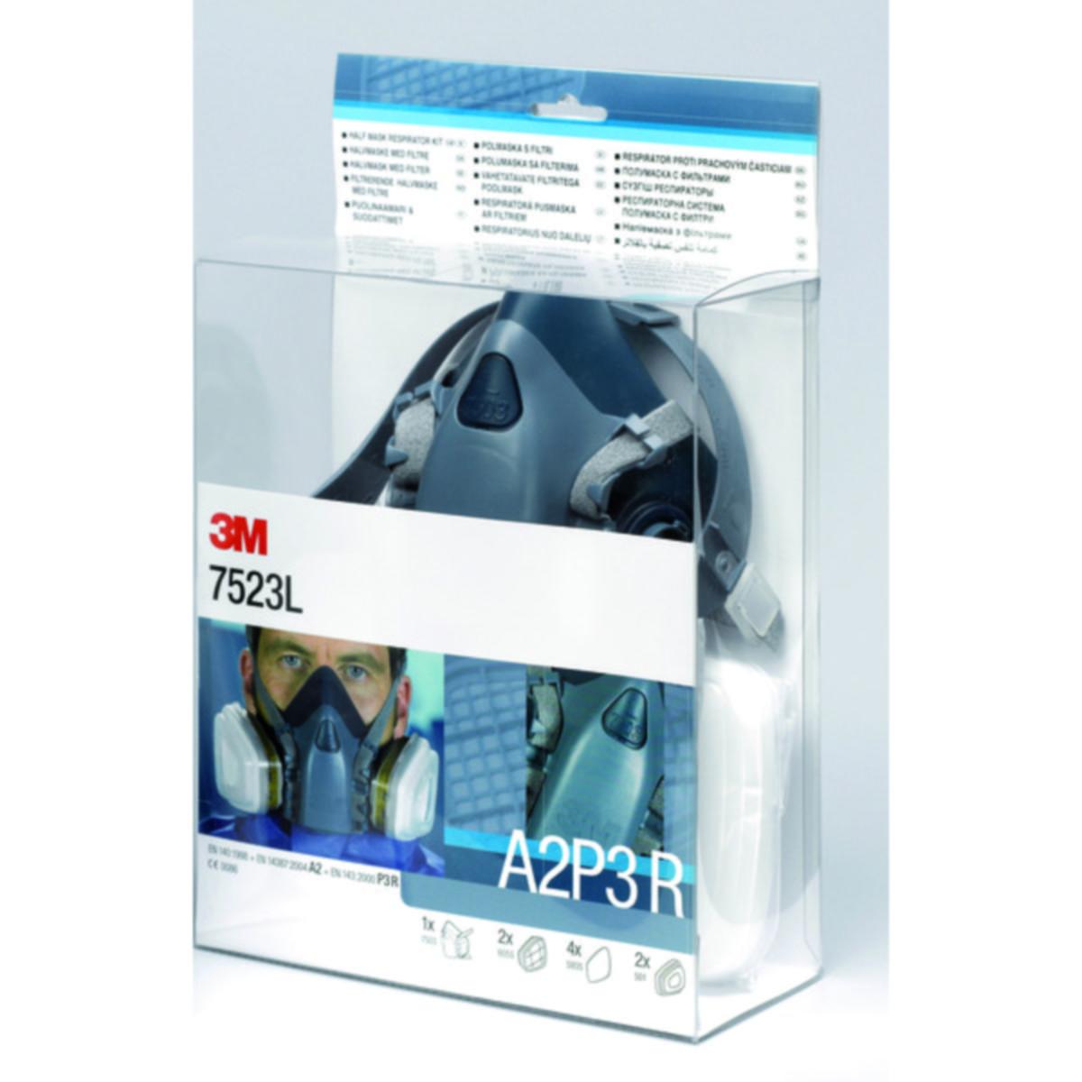 HALVMASK 3M 7523 PACKOUT INKL GAS- O PARTIKELFILTER STL M