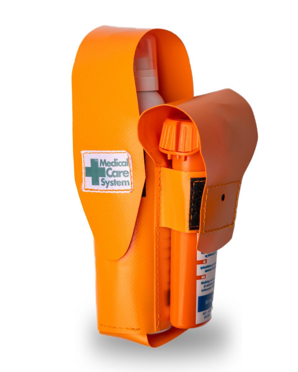 Neongult dubbelhölster med plats för Diphoterine® Micro (100ml) och Diphoterine® SIEW. Med Diphoterine® SIEW kan du påbörja omedelbar Första Hjälpen-behandling och oskadliggörande av kemikalier i ögat inom 10 sekunder. Diphoterine ® Micro (100ml) är en sprayflaska avsedd för att påbörja Första Hjälpen-behandling och oskadliggörande för en mindre kroppsdel (t.ex. hand eller fot).