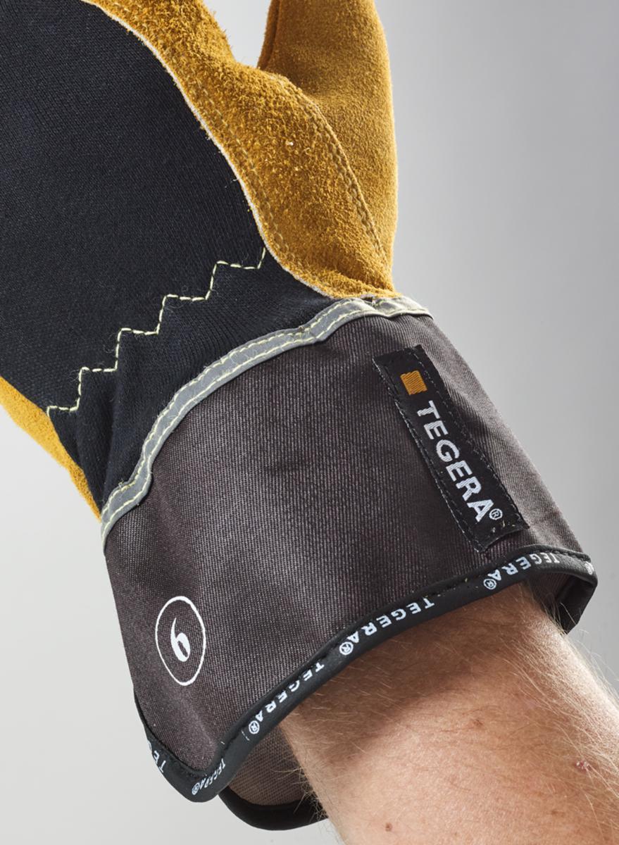 HANDSKE TEGERA 139 NÖTSPALT BRUN/SV KEVLAR HELF STL 8