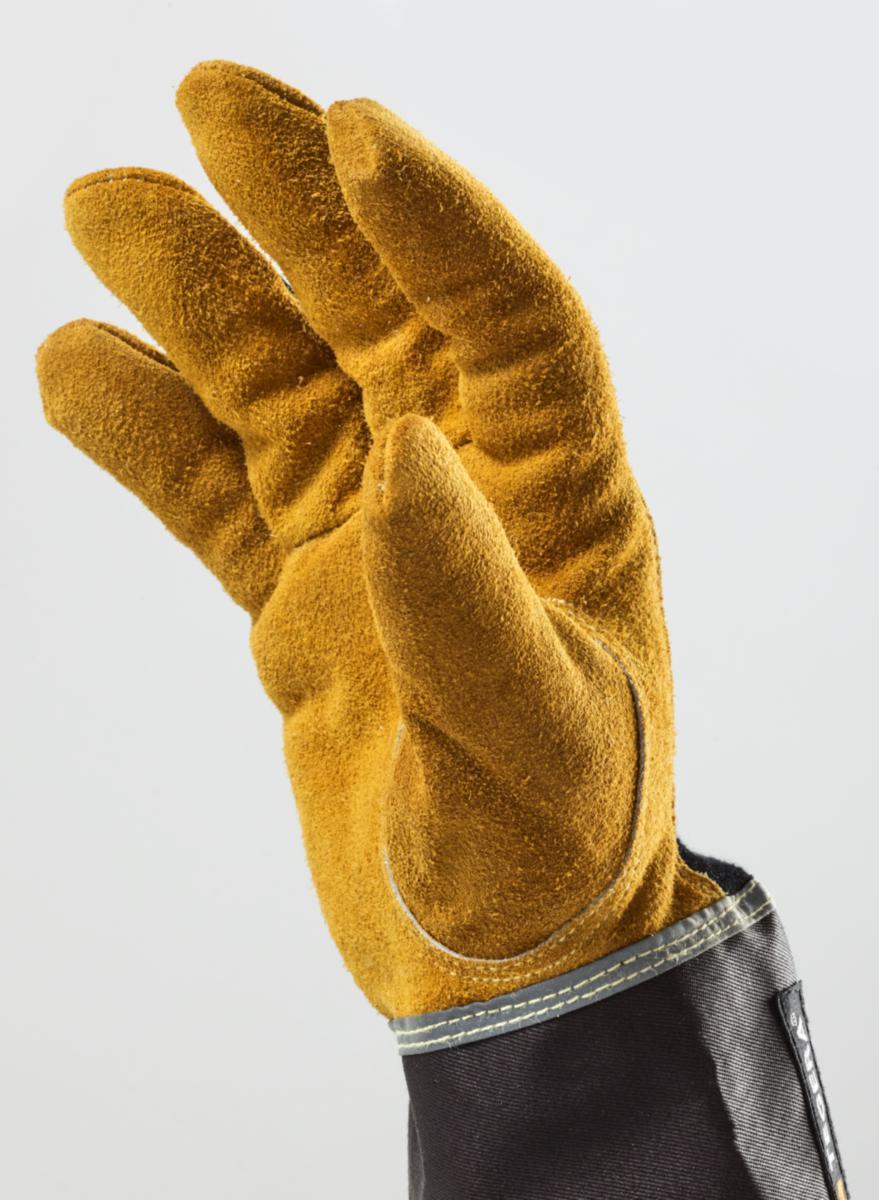 Helfodrad kraftig handske i nötspalt med foder av kevlar. Slitstark och smidig.