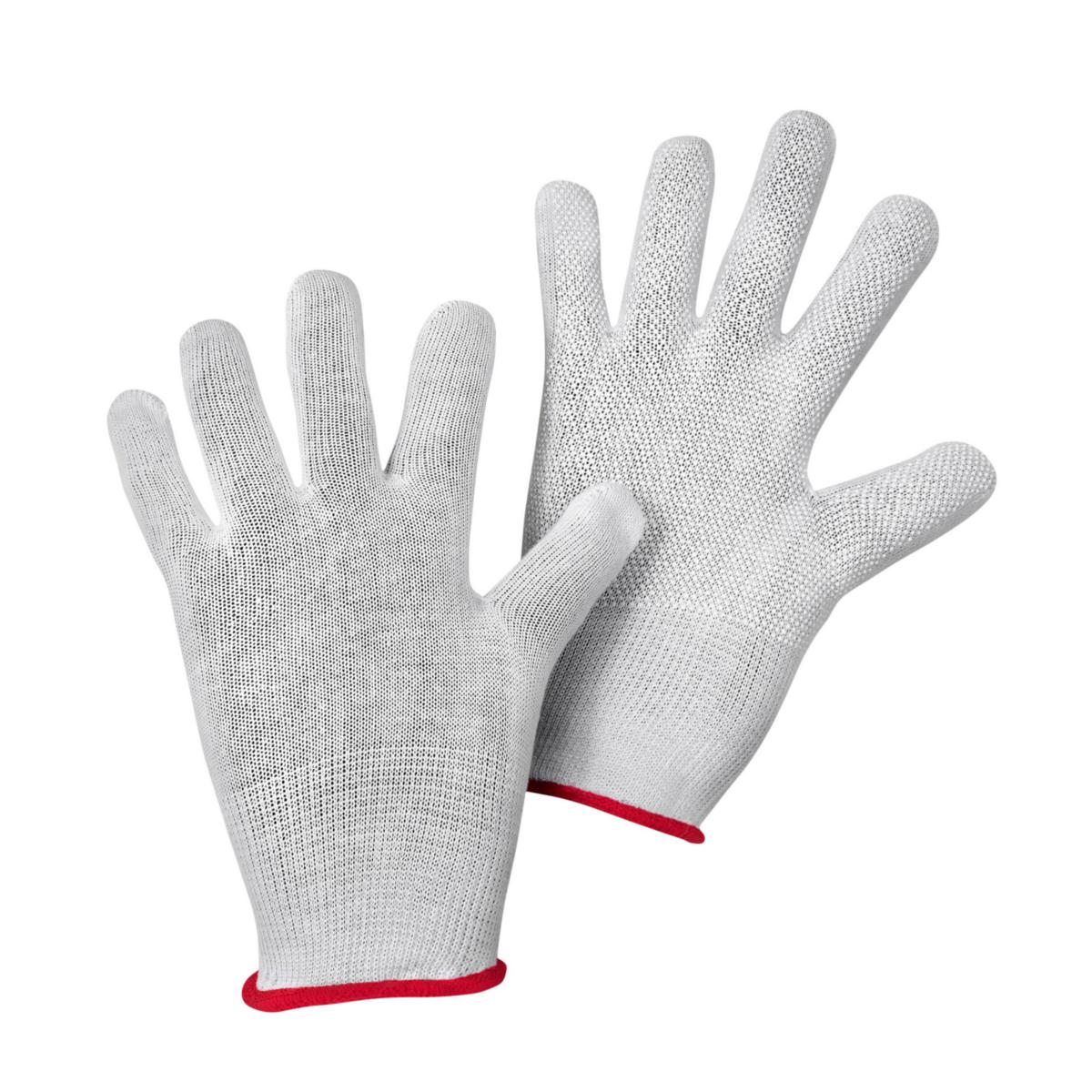 Ofodrad, sval och luftig handske i bomull/polyester med ftalatfria noppor av PVC i innerhanden. Maskinstickad med resår och ribbstickad mudd. Silikonfri.