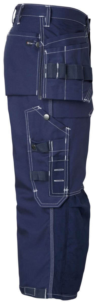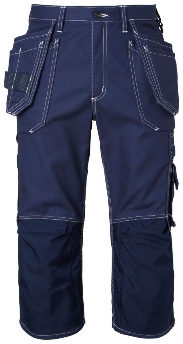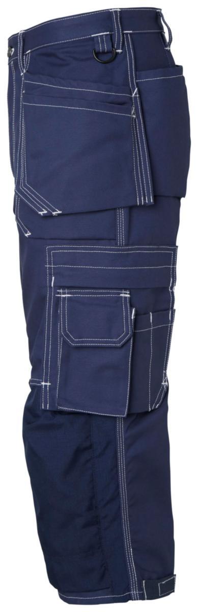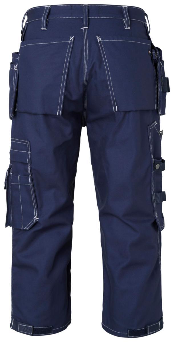 Hantverksbyxa med förböjda 3/4-långa ben. Knäfickor av Cordura. Två framfickor och två bakfickor med bälg förstärkta med CORDURA. Löst hängande spikfickor förstärkta med CORDURA. Vänster hängficka är försedd med två mindre extrafickor. Höger hängficka är försedd med tre mindre extrafickor och dold id-korts ficka som går att fälla ner. Reglerbar hammarhank. Framflyttad tumstocksficka. Tumstocksfickan är utrustad med knivhållare, hälla och pennfack. Benficka med dold dragkedja, pennfack och telefonficka. D-ring. Material: 100% bomull, 380 g/m².