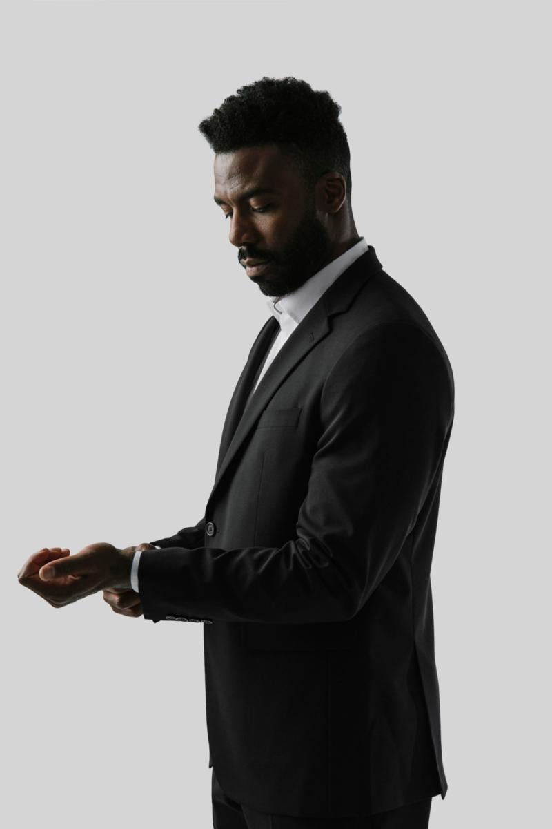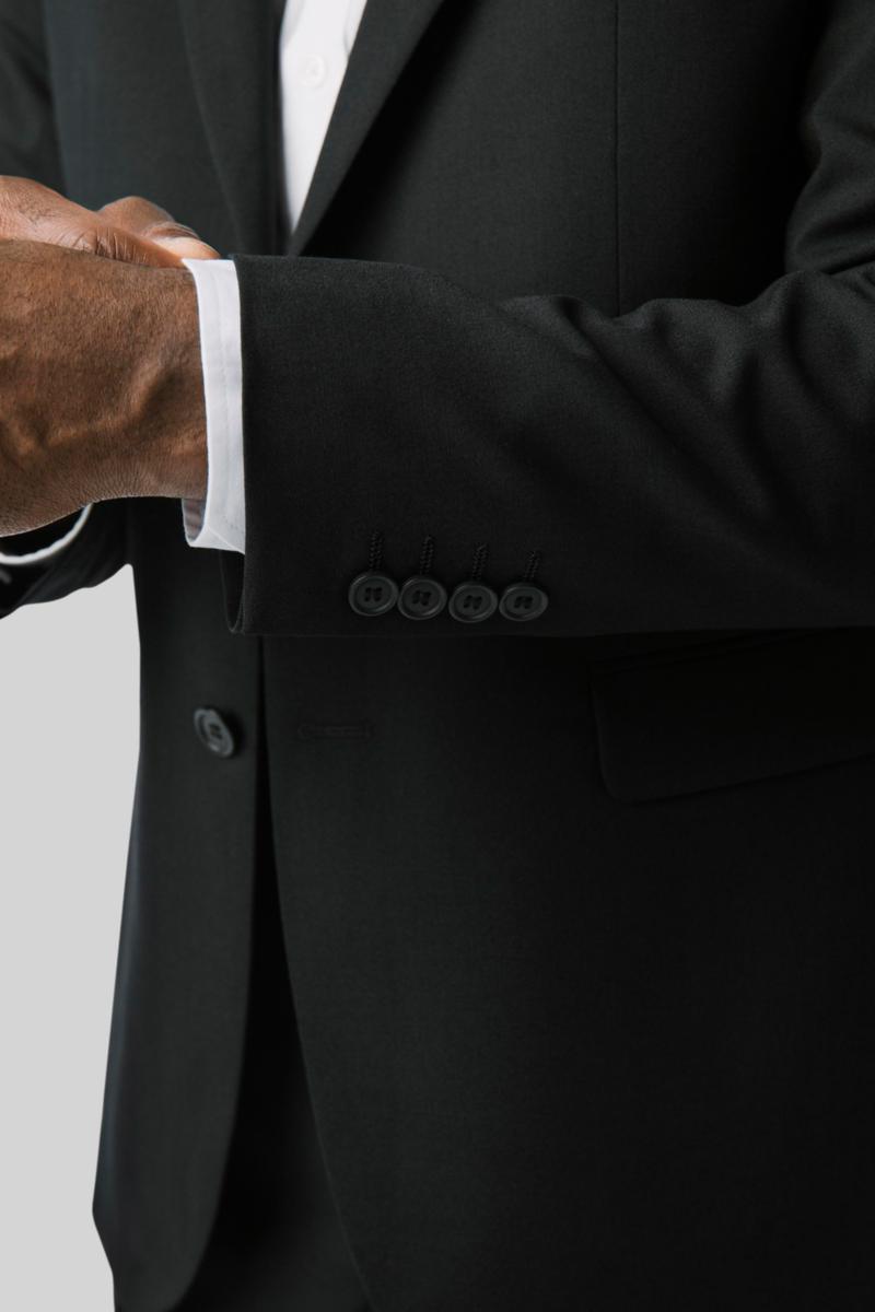 Kavaj i herrmodell med modern passform som ger en klassisk elegant look. Kavajen är helfodrad ocharbetad på insidan med tre innerfickor, samt krage och slag med knapphål på slaget. Kavajen är enkelknäppt med två knappar framtill, slits vid ärmslut och bröstficka framtill. Huvudmaterial: