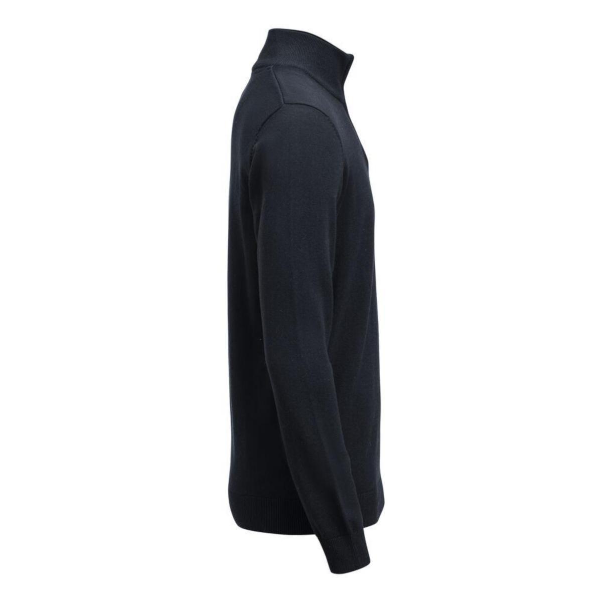 Stickad tröja med metalldragkedja i kragen. 1x1 ribb vid krage, ärmar och bottensöm. Oeko-Tex 100 certifierad. Förpackad i en biobaserad, komposterbar påse. 60% ekologisk bomull, 40% återvunnen polyester (vit: 60% bomull, 40% återvunnen polyester). Easy Care, 134 g/m²