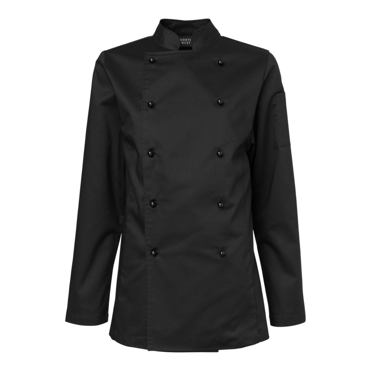 Elsa Chef’s Coat w är en klassisk kockrock i dammodell med dubbelknäppning. Kockrocken har en rymlig passform och långa ärmar med enkelt ärmavslut med sprund som är lätt att vika upp. Rocken har pennf icka på vänster ärm och en hank i nacken. Knappar ingår ej utan kan köpas till separat i 10-pack. Upptäck Elsa Chef’s Coat w från South West. En klassisk kockrock i dammodell med dubbelknäppning. Ko ckrocken har en rymlig passform och långa ärmar med enkelt ärmavslut med sprund som är lätt att vika upp. Rocken har pennficka på vänster ärm och en hank i nacken. Knappar ingår ej utan kan köpas till separat i 10-pack. I storlek 38 är längden mitt bak 70 cm.
