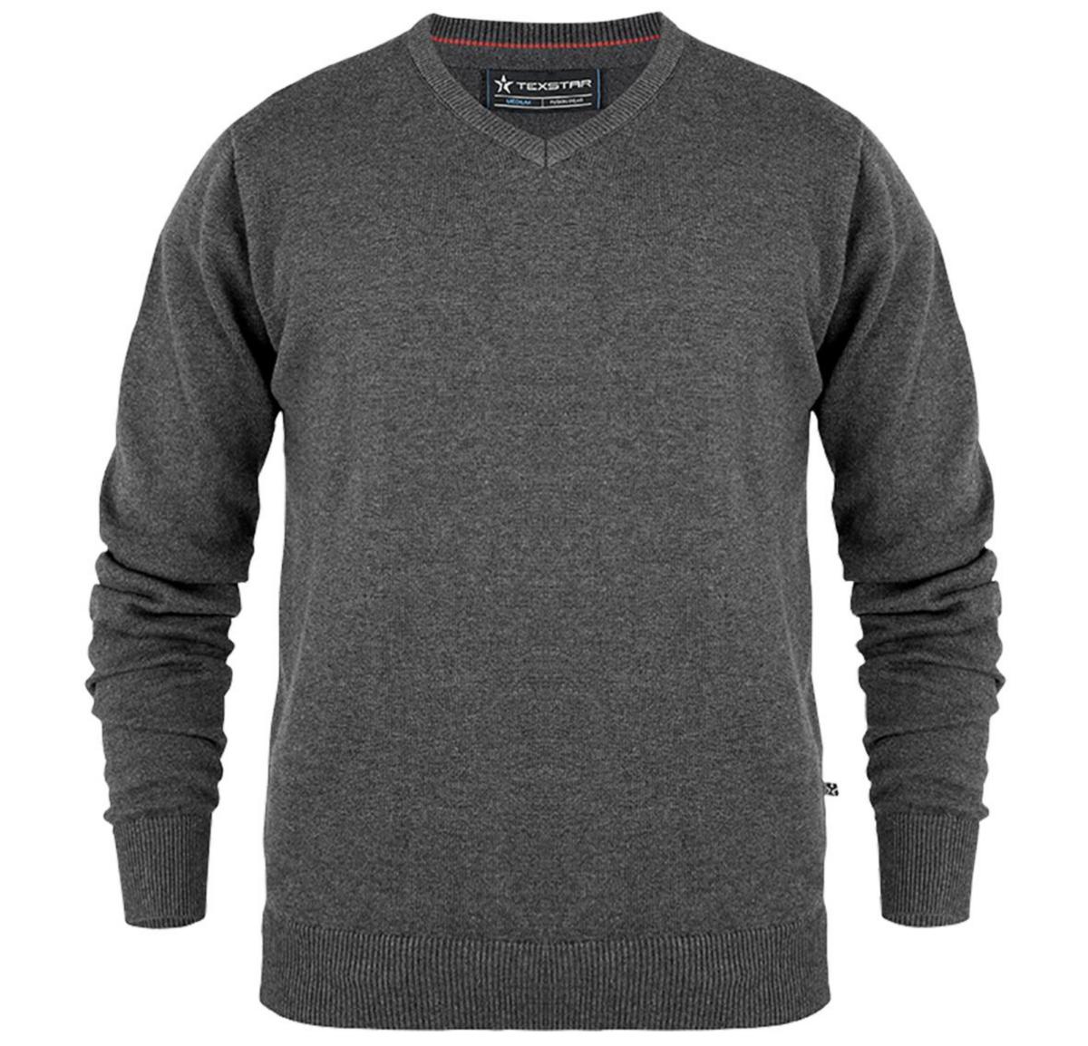PULLOVER TEXSTAR PL01 V-HALS MÖRKGRÅ STL S