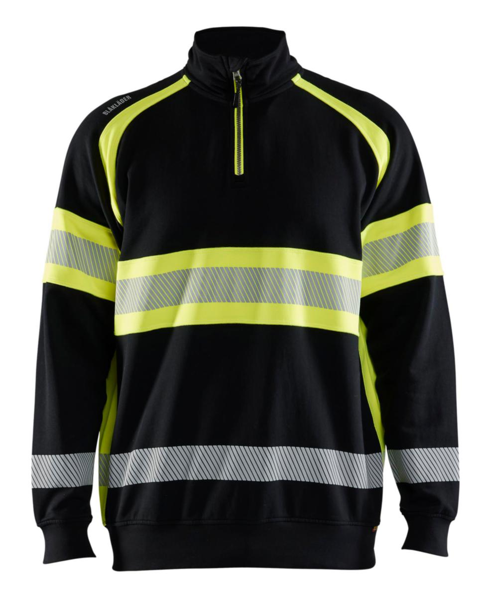Mjuk och bekväm varseltröja med skurna transferreflexer för extra bra stretchegenskaper och andningsförmåga. Har hög krage, half zip och mudd i nederkant samt ärmavslut för högre komfort. Tröjans mörka parti består av 100 % bomull och varselpartiet är gjort i 100 % polyester. Material: 100% bomull, french terry, 320 g/m². Tvättråd: 40°C. Standard: EN ISO 20471, klass 1.