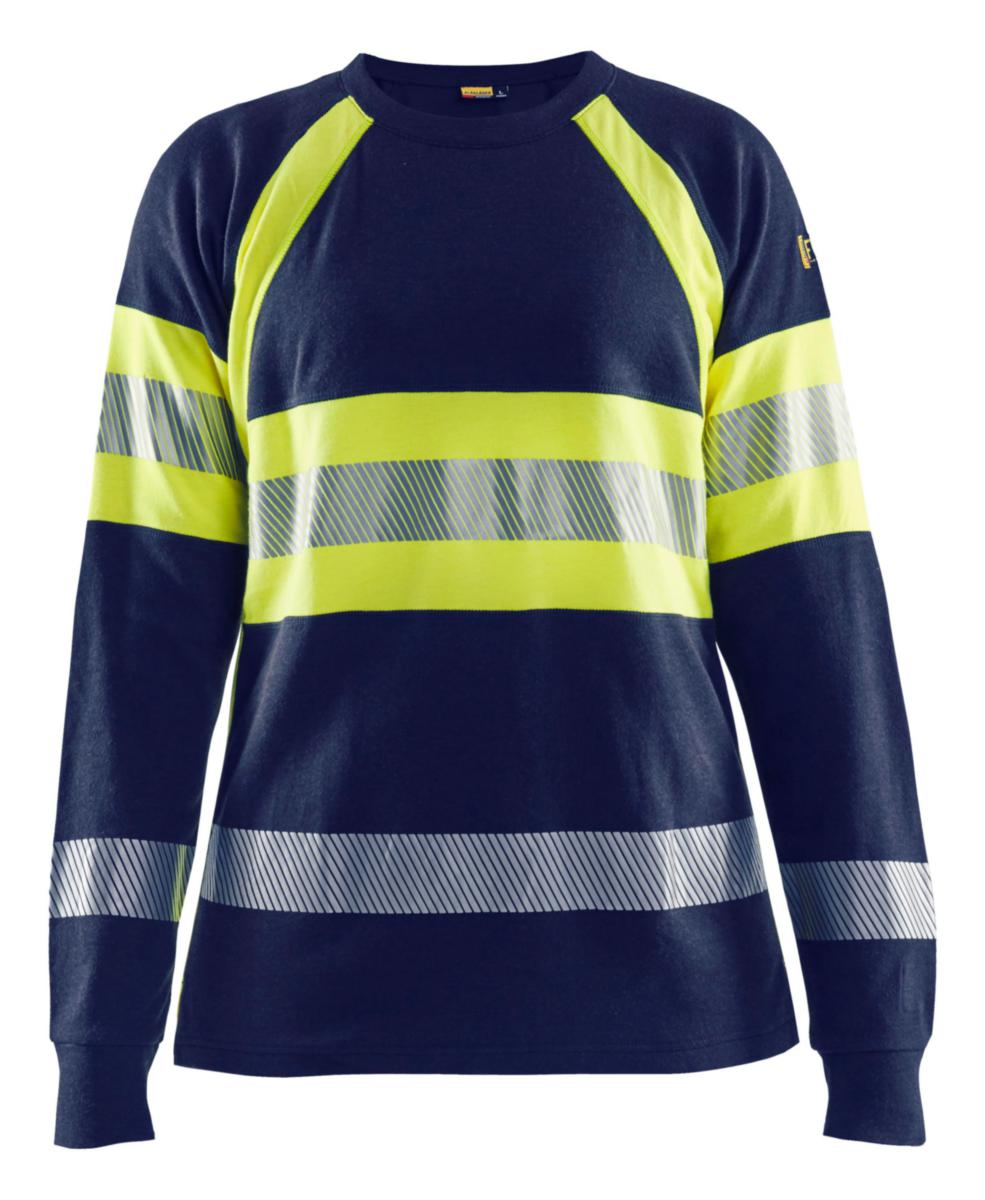 Långärmad t-shirt med dampassform i kraftig kvalitet med högt skyddsvärde och i varsel klass 1. Plaggets mjuka och höga komfort bidrar till ett svårslaget helhetsintryck. Material: 48% modakryl, 42% bomull, 5% aramid, 3% polyamid, 2% antistat, interlock, flamskyddad, antistatisk, 250 g/m². Tvättråd: 40 °C.