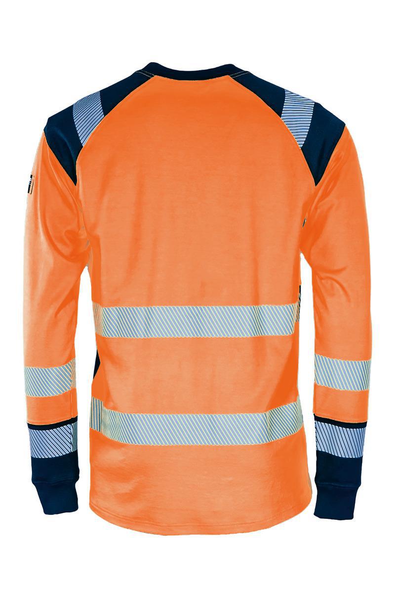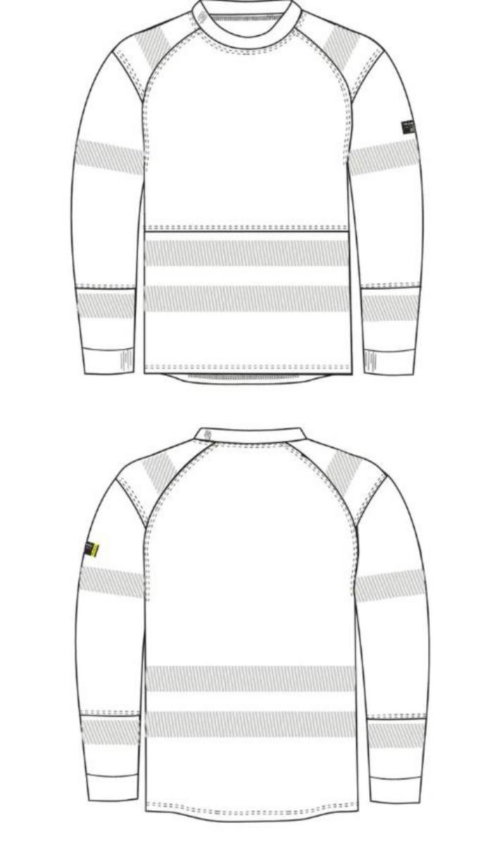 Mjuk och formstabil varselt-shirt med lång ärm i trikå med bomullsinsida. Rund halsringning. Lång ärm med mudd i ärmslut. Påpressade reflexer för ökad komfort. *T-shirten är kombinationscertifierad och uppnår EN ISO 20471 CL.3 tillsammans med Tranemos byxor eller hängselbyxor certifierade enl. EN ISO 20471 CL.2. Material: 113: 55% polyester / 45% bomull, 200 g/m². Tvättråd: Tvättas i max 60°C. Standard: EN ISO 20471 CL.2*.