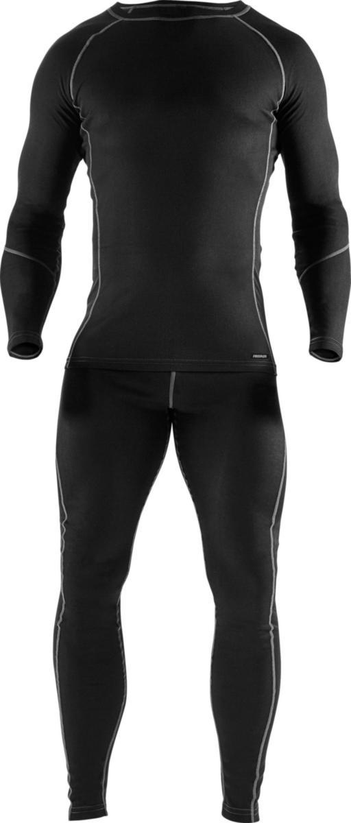 Set med tröja och långkalsong. Transporterar fukt. Andningsfunktion. Snabbtorkande. Flatlocksstickade detaljer i kontrastfärg. Material: 100% polyester. PFAS-fri
