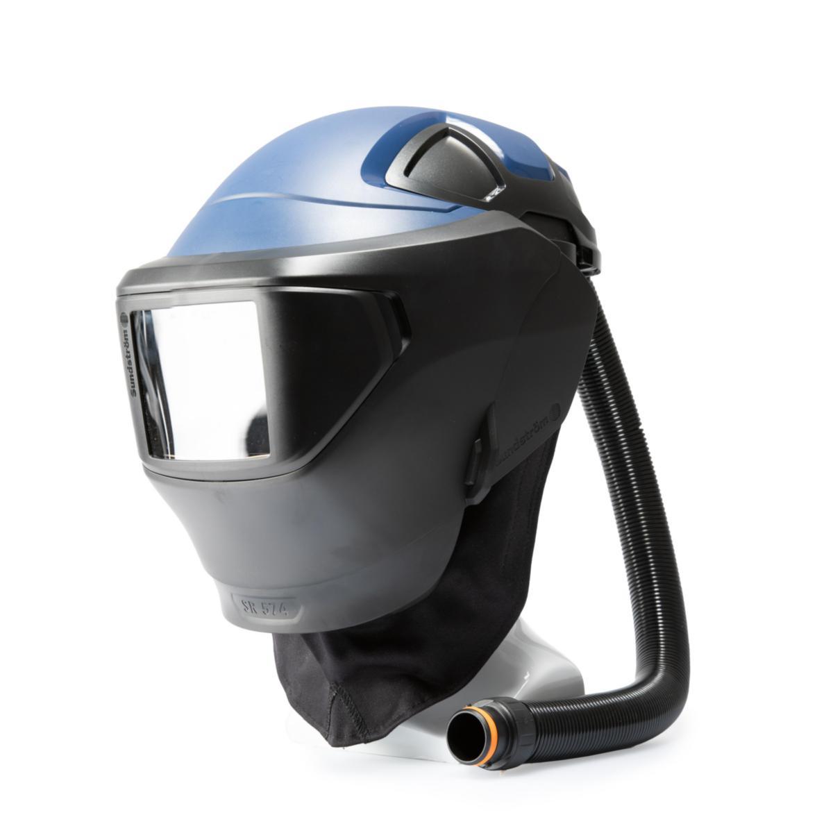Svetsvisir SR 574 är avsedd att användas tillsammans med Sundströms skärm SR 570. Skärm med svetsvisir tillsammans med den batteridrivna fläkten SR 500 eller SR 700 och godkända filter ingår i Sundströms fläktassisterade andningsskyddssystem. Skärmens andningsslang ansluts till den filterförsedda fläkten. Övertrycket i skärmen förhindrar partiklar och andra föroreningar att komma in i andningszonen. Produkterna kan också användas tillsammans med trycklufttillsats SR 507. Denna kombination utgör en andningsapparat med kontinuerligt luftflöde för anslutning till tryckluft. Se separat produktblad SR 507. Kombinationerna skyddar mot skadliga gaser/partiklar, strålning och stänk vid svetsning, skärbränning, slipning och liknande arbeten. Utformningen gör de användbara vid arbeten i trånga och svåråtkomliga utrymmen. Utrustningarna kan användas som alternativ till filterskydd i alla situationer där sådana rekommenderas. Detta gäller i synnerhet vid tunga, varma eller långvariga arbeten. Före användning ska ett svetsglas med lämplig täthet monteras i svetsvisiret. SR 574 levereras med svetsglas EN 10 och skyddsglas i polykarbonat. Glasen ska vara CE-märkta och av standardstorlek 90 x 110 mm. Tillbehör i form av svetsglas, automatiska svetsglas, korrektionsglas, nack- och bröstskydd och slangskydd finns.
