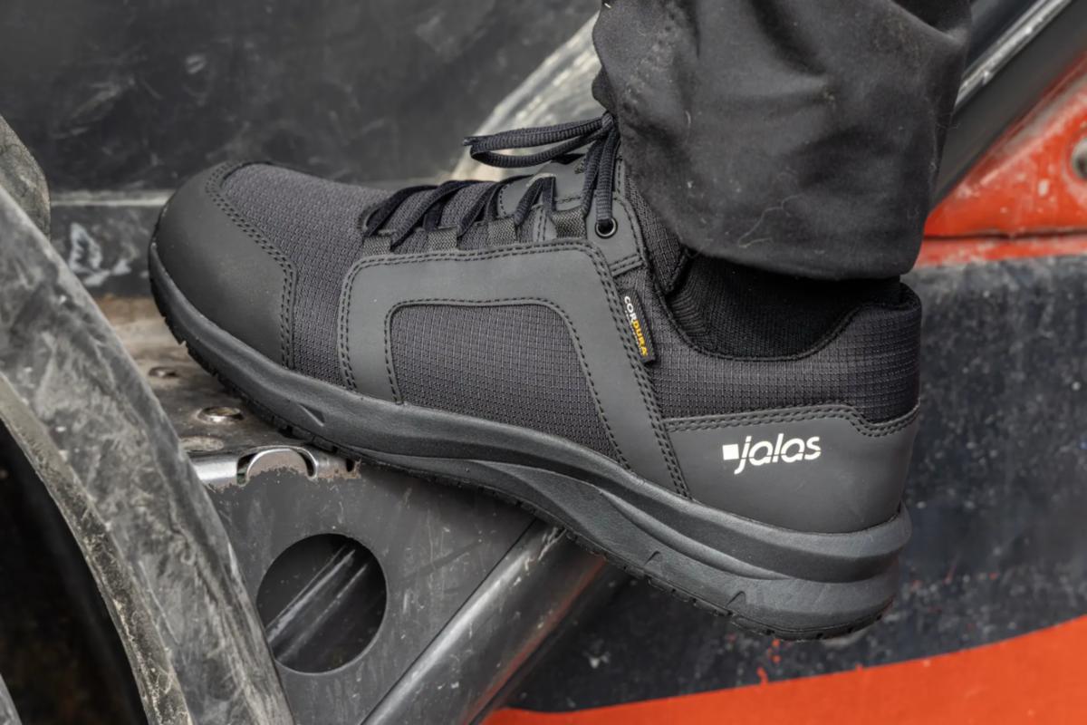 JALAS Tempus 5705, Helsvart, lätt och vattenavvisande skyddssko. Ovandel i 100 % återvunnen Cordura® re/cor™ polyester med PFAS-fri yta. Tåhätta i metall och ESD-skydd.