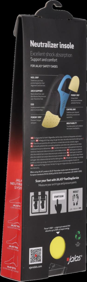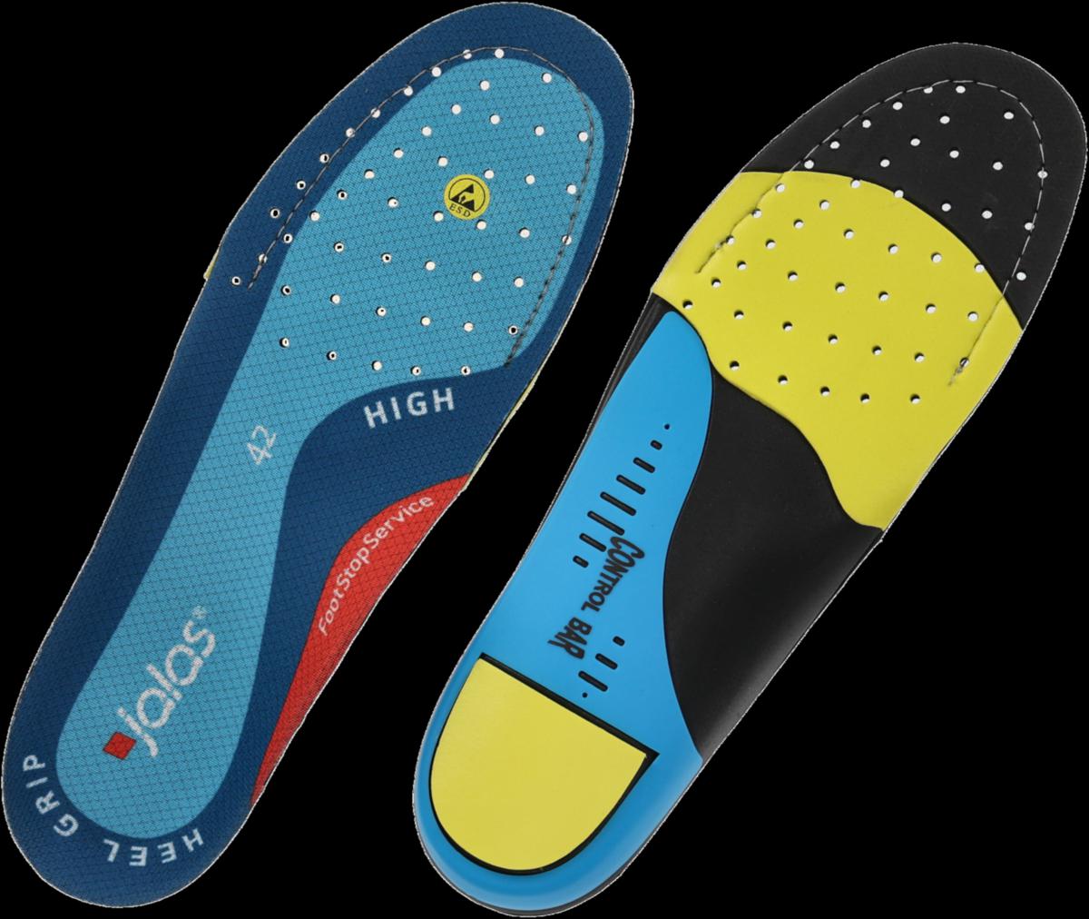 Innersula för höga fotvalv. Perfekt för dig som vill göra dina Jalas® skor ännu säkrare och mer bekväma. Sulan har dubbla stötdämpningszoner i PORON® XRD vilket minskar risken för skador och ökar bekvämligheten. Den är anatomiskt utformad, godkänd för användning i alla Jalas® skyddsskor och ger skydd mot ESD. Material: Textil, Mjuk E.V.A, Elektriskt ledande polyestertråd, Control bar i TPU, Dubbla stötdämpningszoner i Poron® XRD®.