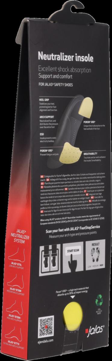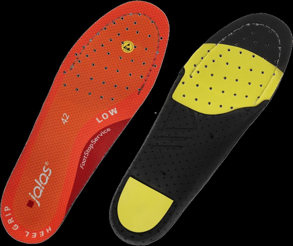 Innersula för låga fotvalv. Perfekt för dig som vill göra dina Jalas® skor ännu säkrare och mer bekväma. Sulan har dubbla stötdämpningszoner i PORON® XRD vilket minskar risken för skador och ökar bekvämligheten. Den är anatomiskt utformad, godkänd för användning i alla Jalas® skyddsskor och ger skydd mot ESD. Material: Dubbla stötdämpningszoner i PORON® XRD®, Elektriskt ledande polyestertråd, Mjuk E.V.A, Textil.