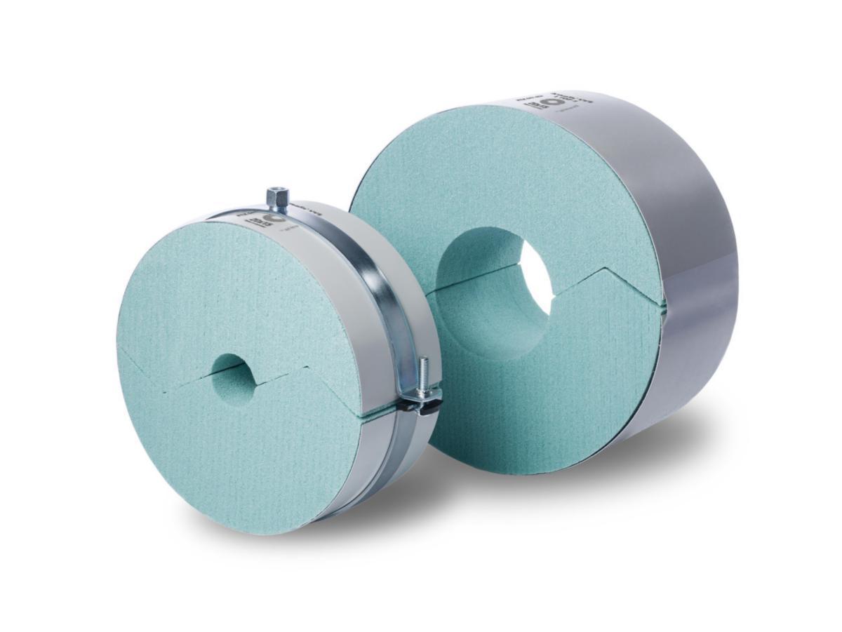Distansskål till varma VVS-rör för att minska värmeförluster vid upphängningspunkter. Två ArmaFORM PET sektioner beklädd med en 0,8 mm alumantel. Bärande PET-SKUM, grå tejp och yttre skydd med aluminiumplåt 0,8 mm vilken samtidigt fungerar som ångspärr för PET-segmenten. ArmaFix VVS lämpar sig för rör med drifttemperaturer upp till +110 °C.