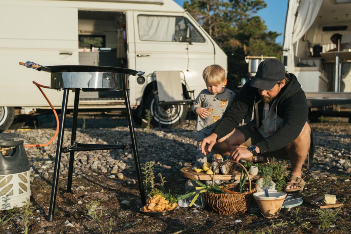 En populär stekhäll för upp till 8 personer med alla tillbehör du behöver för att komma igång med utomhusmatlagningen. Hällen kan användas i kombination med medföljande gasolbrännare på stativ men också på en grill eller direkt över öppen eld. Utöver stekhällen i varmvalsat stål som mäter Ø 58 cm så ingår även en gasolbrännare Ø 40 cm med 2 brännarringar samt ett regulatorset.