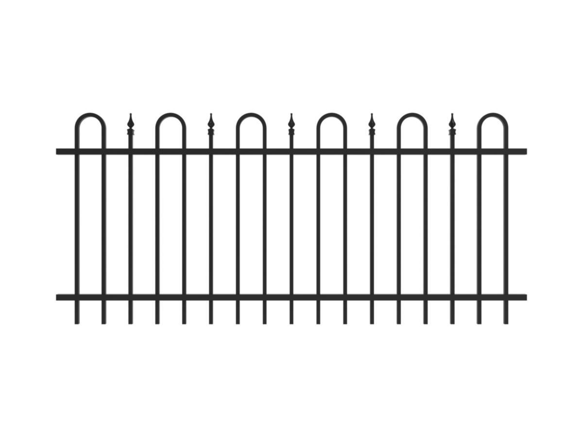 Staket i galvaniserat stål, därefter zinkbehandlat och lackerat med UV-beständig pulverlack.