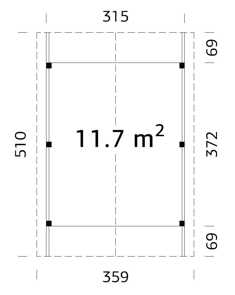 Den kraftiga konstruktionen med sex rejäla stolpar och tak av spontade brädor gör carporten stabil och hållbar. Skydda bilen från kyla och snö och slipp skrapa fram din bil kalla vinterdagar. På sommaren skyddar taket bilen från solen och ger dig en behagligt sval bil. Ett perfekt alternativ eller komplement till ett garage.