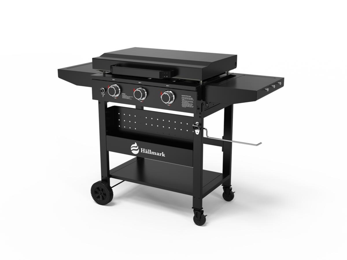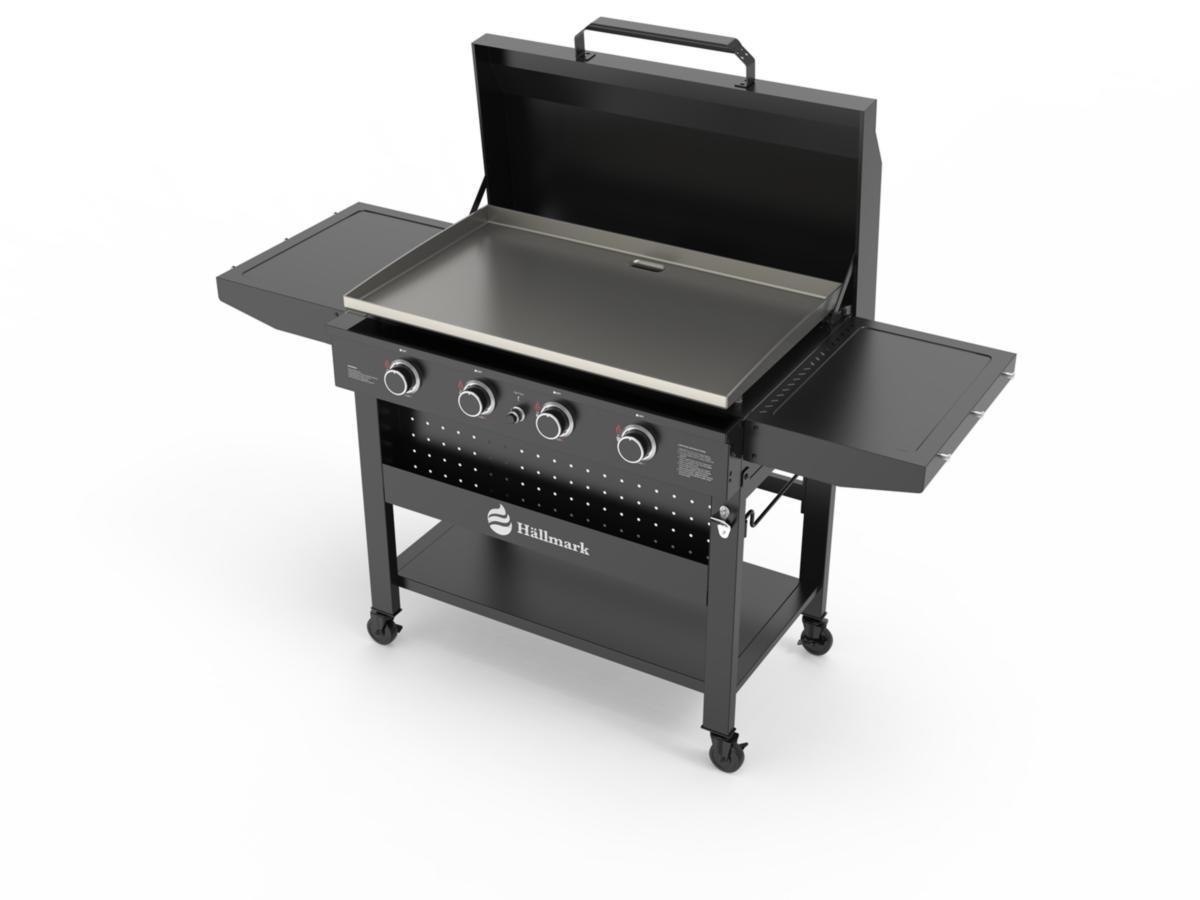 Stekbord med avställningsytor och möjlighet att reglera fyra värmezoner individuellt. Fabriksinoljad häll i stål. Sidoborden är utfällbara för att minimera utrymme när bordet inte används. Hyllplan och låda undertill. Hållare för kökshandduk och krokar för redskap. Avtagbar fettuppsamlare för enklare rengöring. Regulator, slang och skyddsöverdrag medföljer.