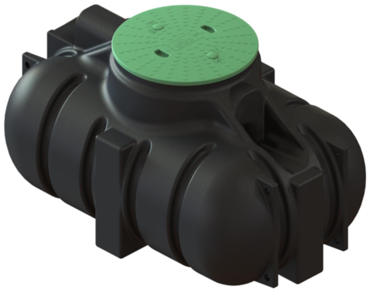 Tankens kraftfulla design gör att tanken kan installeras både ovan som under mark. Flexibelt installationsdjup. Alla Cipax förhöjningshalsar passar. Kan förses med nivålarm. Tillverkad i återvinningsbar PE-polyten.