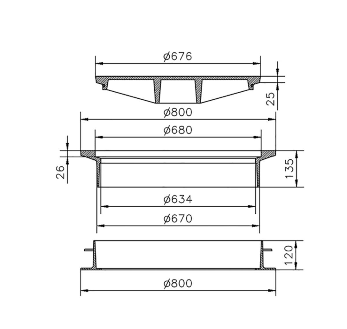 Teleskopisk betäckning med A- eller FV-lock. För nedstigningsbrunnar. Av gjutjärn, asfalterade, med O-ringstätning av olje- och bensinbeständigt nitrilgummi, lock av segjärn SS 140727 och övriga delar av gråjärn SS 140120 där annat ej anges.