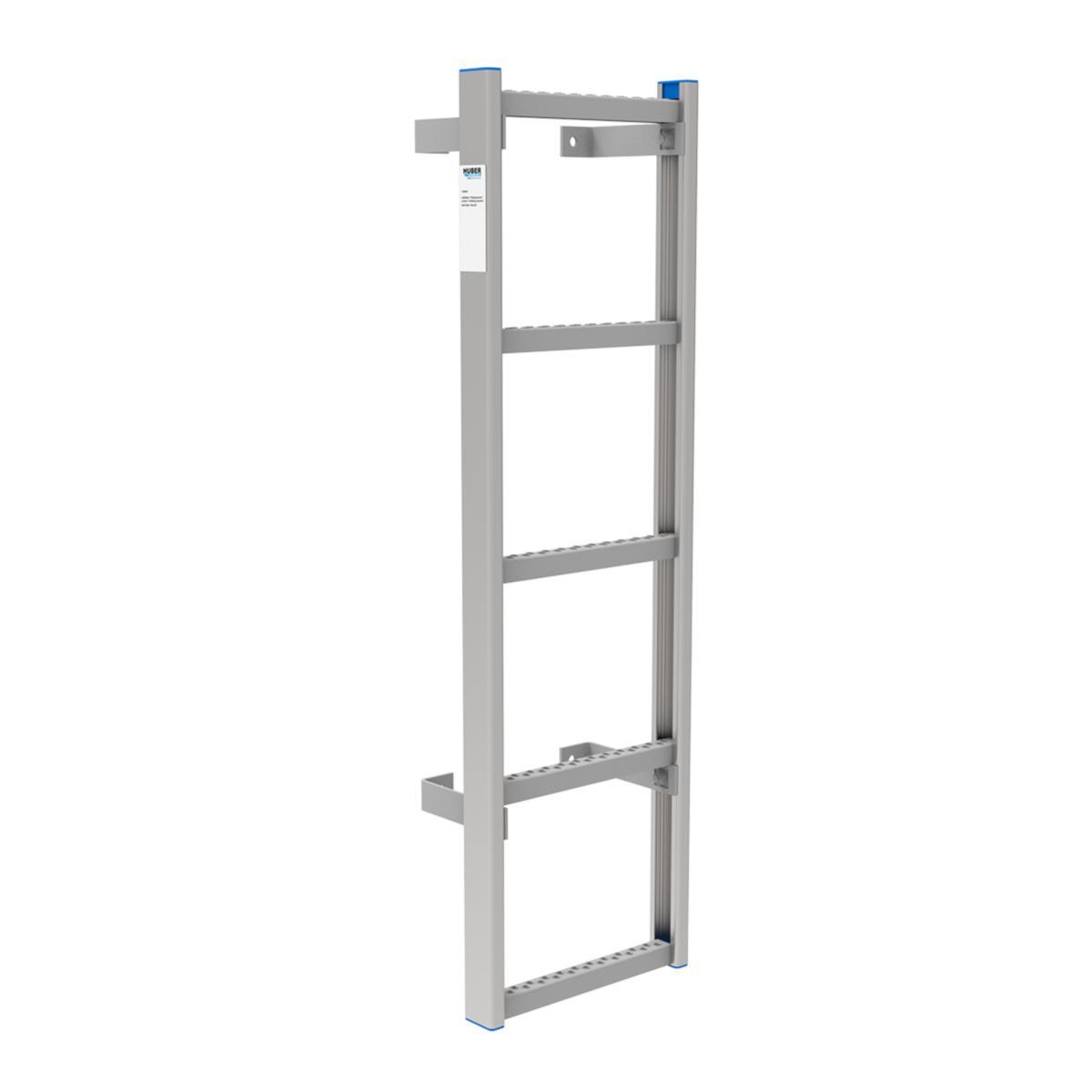 Säkerhetsstege, med typgodkännande och CE-märkning enligt SS EN 14396. Tillverkad i rostfritt stål 1.4307 (AISI 304 L). Stänger i specialprofil med hög styvhet (57x25x2,5 mm), stängda med PVC-kåpor upptill. Stegpinnar i U-profil med perforerad stegyta, 30 mm, halkskydd R13, steghöjd 280 mm, invändig stegbredd 400 mm.