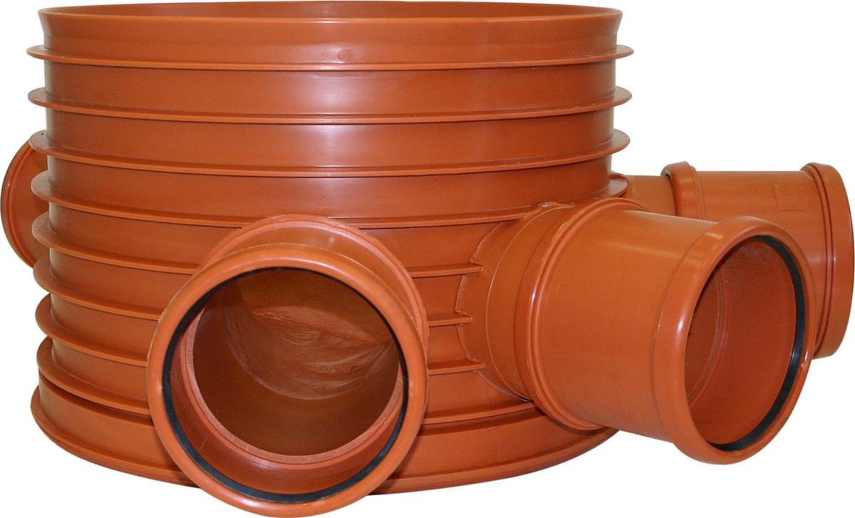TB Tillsynsbrunn vallad PRO600, dubbelavgrenad 45 grader. Avsedd för släta markavlopsrör. Komplettera med excentriska övergångar för anpassning till strukturväggsrör.