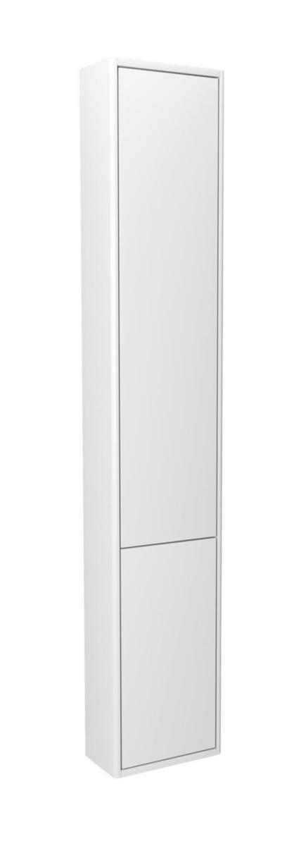 Gustavsberg Graphic Högskåp med två släta luckor. Mjukstängande dörrar som är vändbara för höger- eller vänstermontage. 1 fast hyllplan i trå och 4 flyttbara hyllplan i glas. Finns en djupare modell med 32 cm djup.