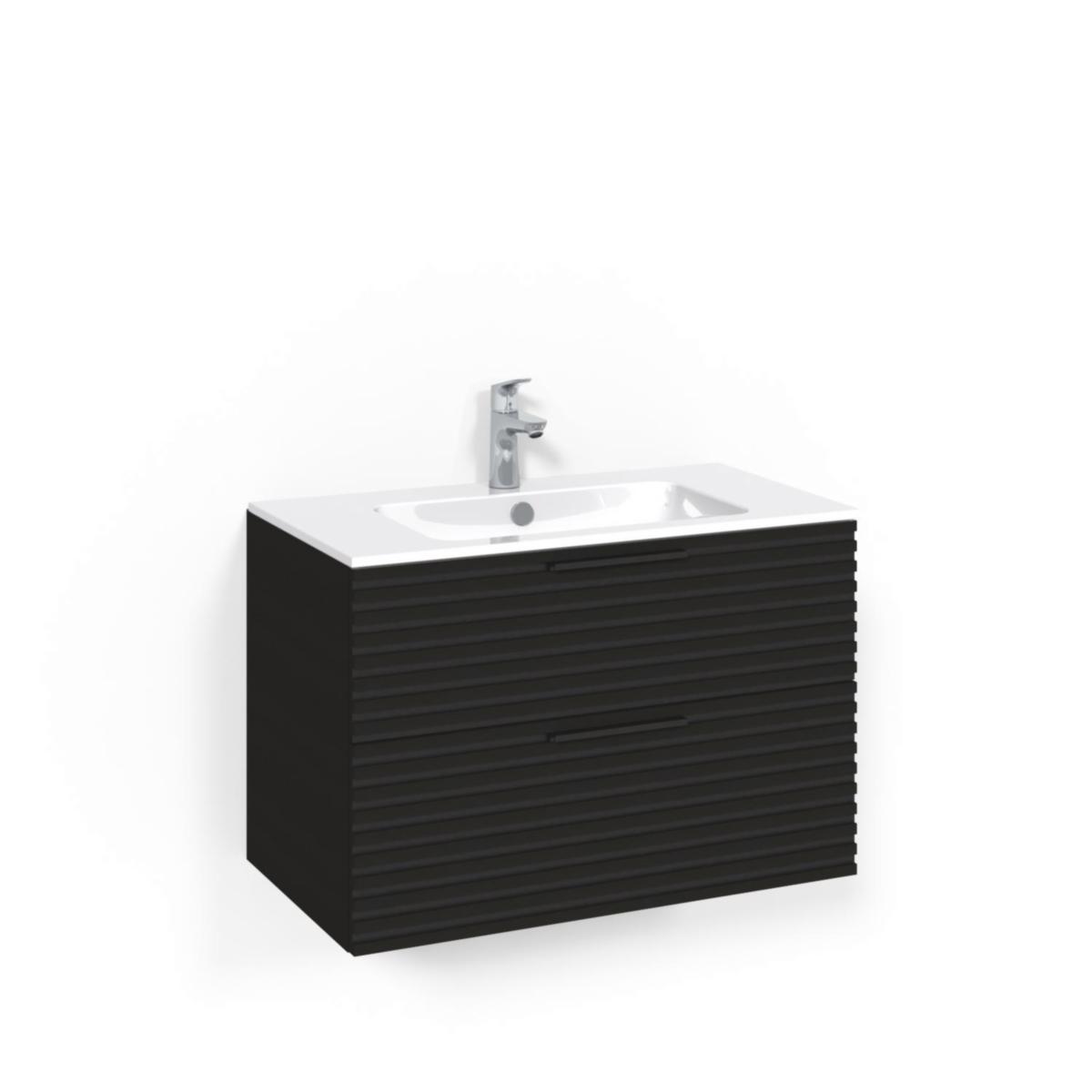 Tvättställsskåpspaket Crown Kommod 80x45 Svart Ek, Macro
