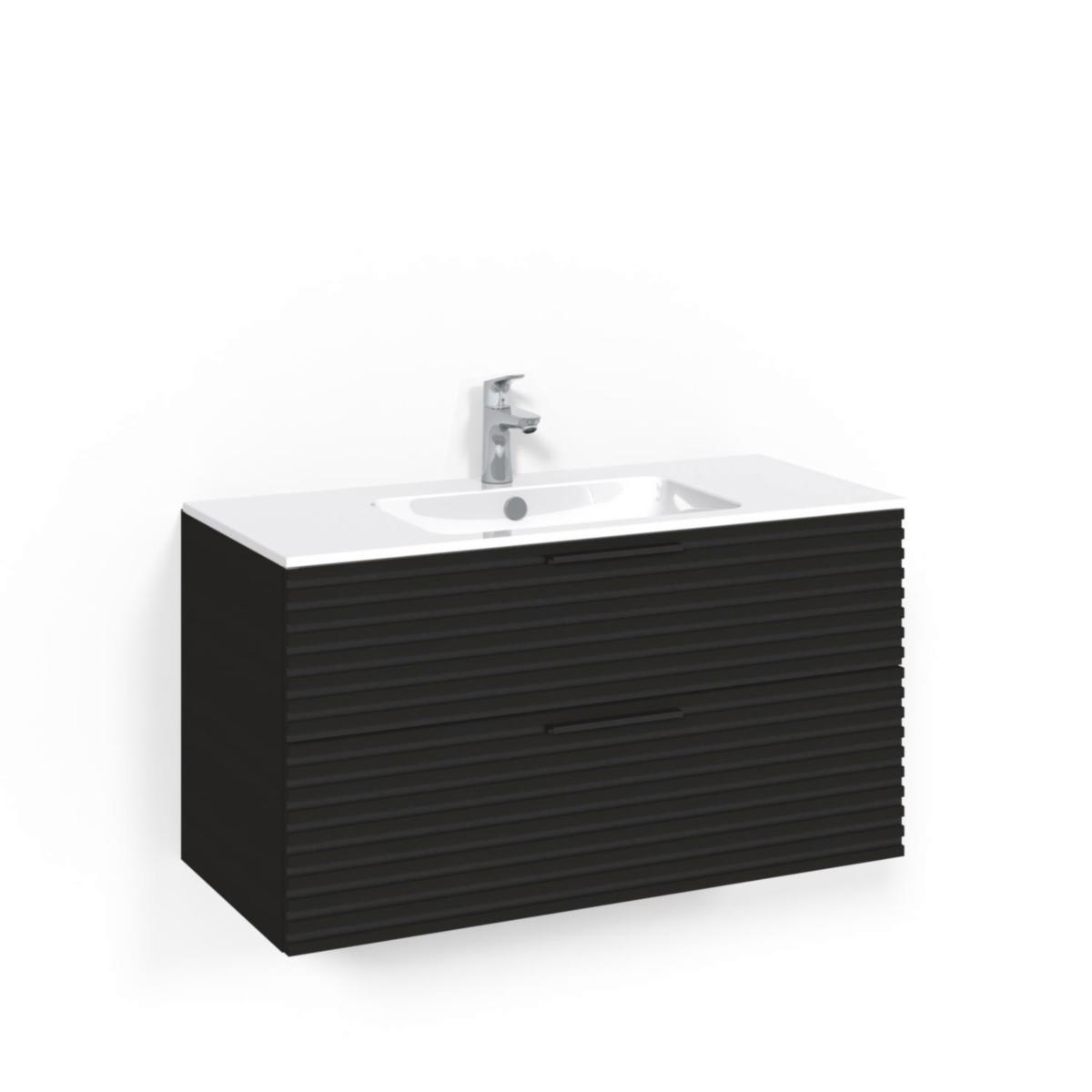 Tvättställsskåpspaket Crown Kommod 100x45 Svart Ek, Macro