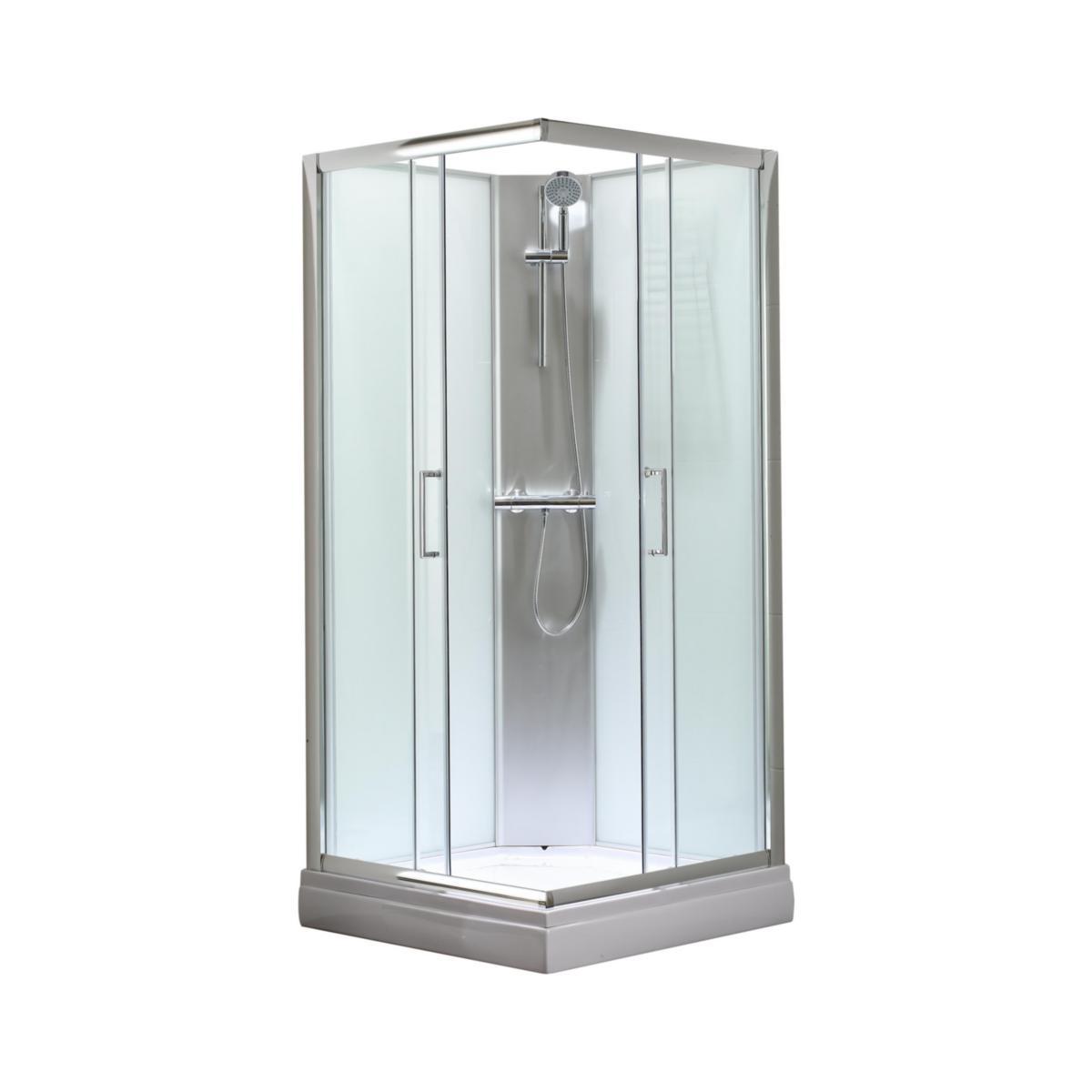 Snabbinstallerad rektangulär duschkabin. Duschkar i acrylplast, höjd 15 cm med avtagbar front. Bakre vägg i 5 mm härdat vitt glas. Främre vägg i 5 mm härdat glas. Hål för blandarfästen både för c/c 150mm och c/c 160mm. Aluminiumprofil med kromfinish. Levereras med handdusch på glidstång 25mm, utan blandare och duschhylla. Lämplig termostatblandare a-collection 8351081, 150c/c samt anslutningskoppling 8253263, G20xG15 utvändig gänga.