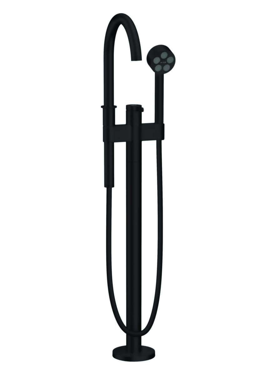 • består av: 1-grepps badkarsblandare för golvmontering, handdusch, duschslang, duschhållare