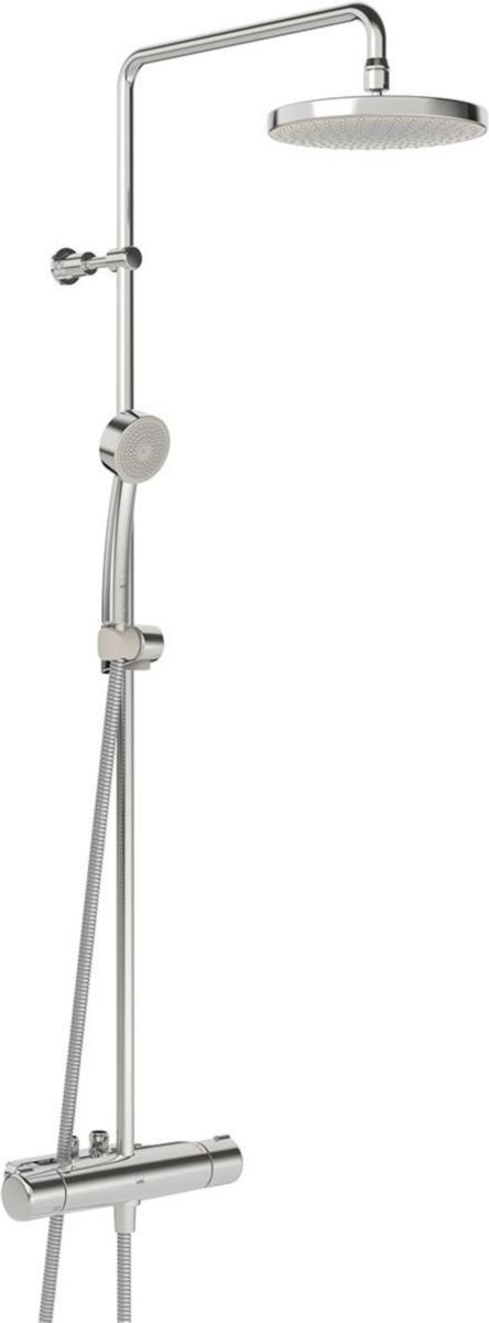 Oras Nova rain shower takduschpaket med termostatblandare 40cc, användarvänliga vred med temperaturbegränsning och flödeskontroll för Ecoflöde, blandaren är utrustad med backventiler och smutsfilter, kapbar duschstång med justerbart väggfäste, takdusch Ø200mm, handdusch Ø70mm, 1-strålläge, med antikalk-munstycken. Integrerad keramisk omkastarfunktion samt duschslang 1750mm.