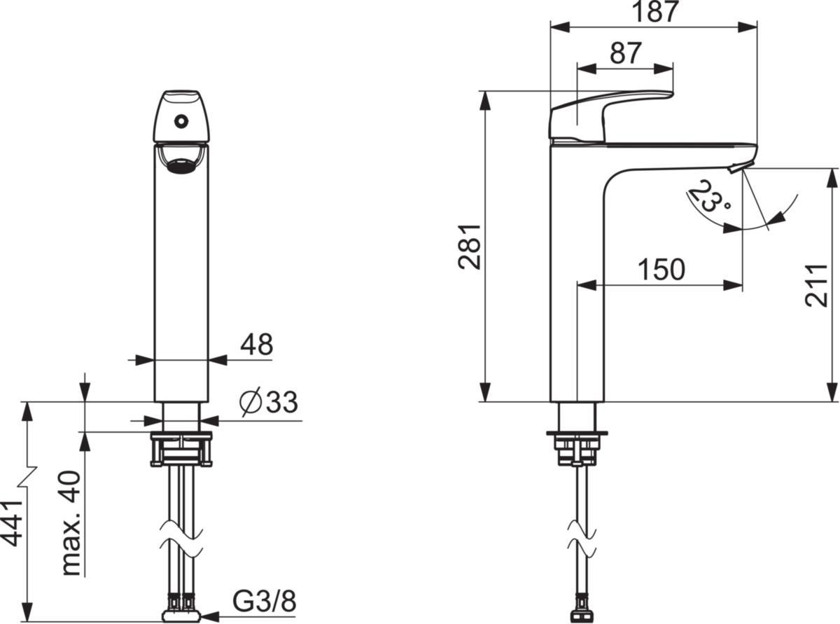 - Anslutningsdimension tillopp: Ansl. 10 (3/8")