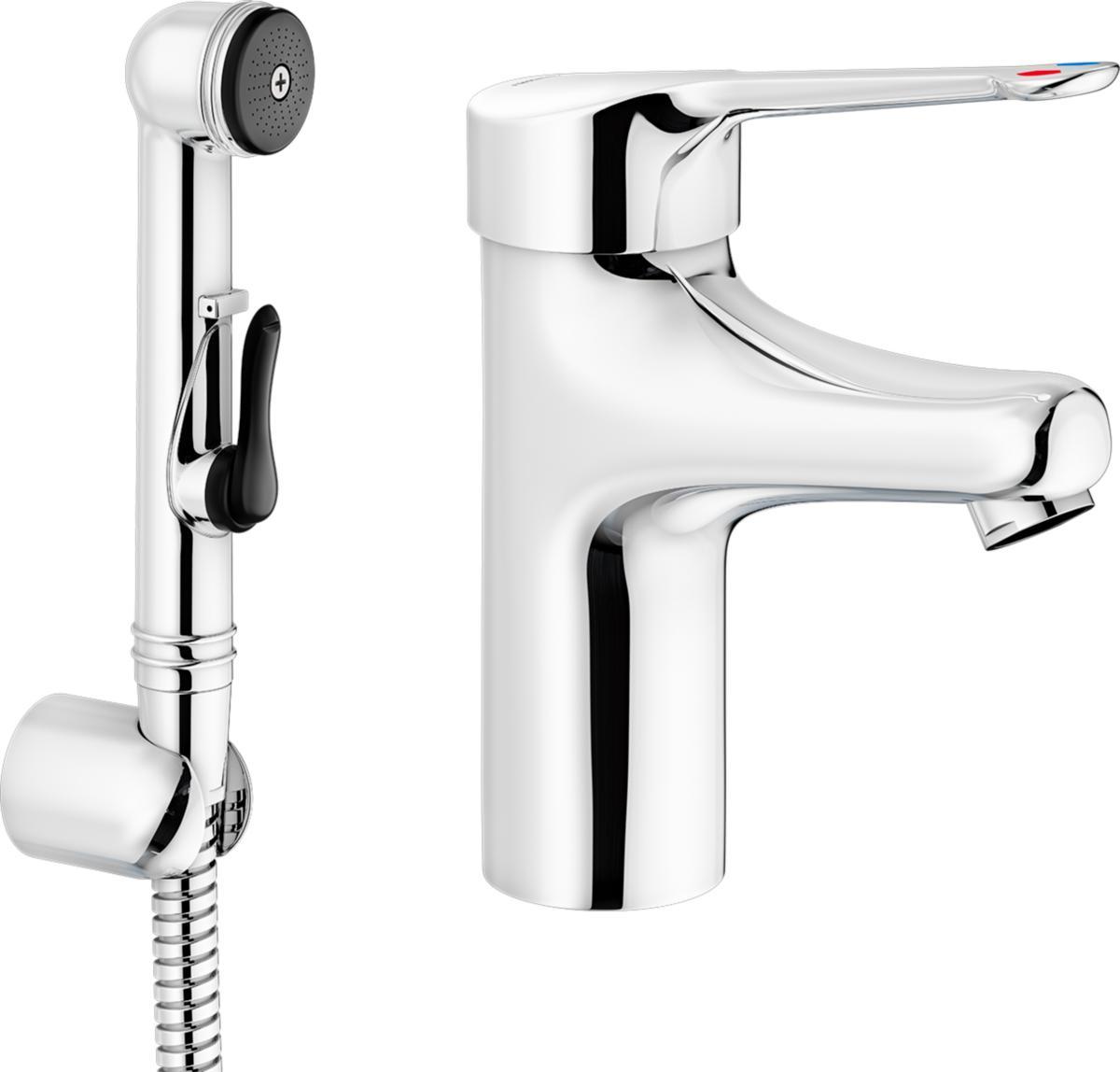 Med självstängande handdusch. Omställbar flödesbegränsning och temperaturspärr.