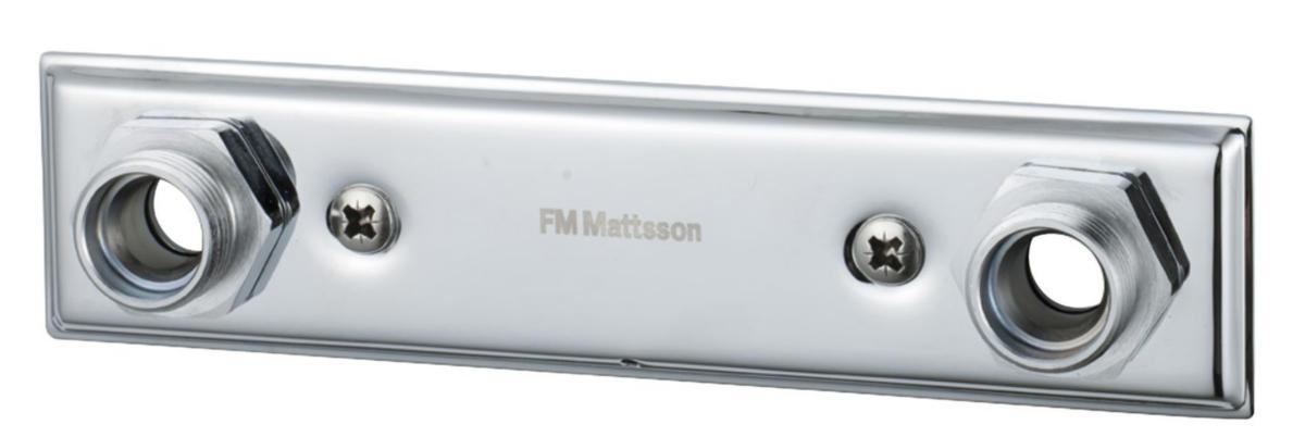 Typgodkänt blandarfäste för dold rördragning med skruvar och väggtätning. Rörskarven hamnar utanför vägglivet. Avsett för typgodkända Pex-rör.