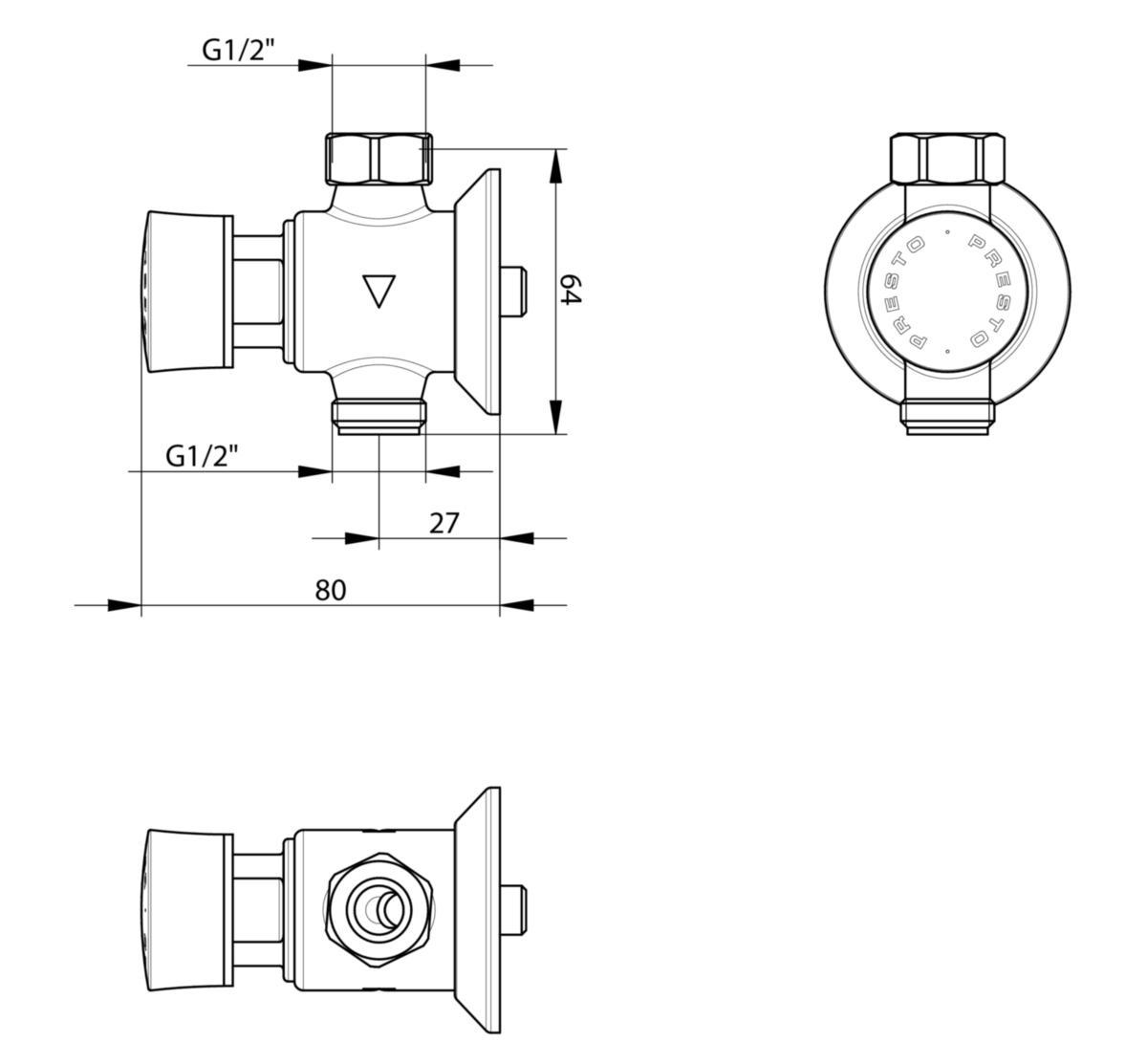 Presto Neo spolventil G15 för väggurinal. Spoltid 5-7 sek.