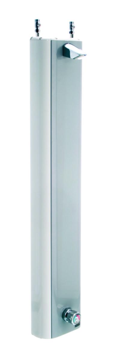 Duschpanel med inbyggd självstängande blandare. Med ratt av förkromad mässing. Anslutning uppifrån. Duschpanelen levereras med back- och avstängningsventiler.