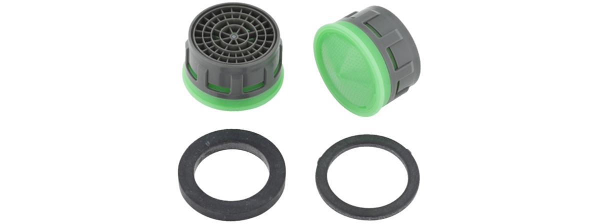 Strålsamlarinsats med packning. Rekommenderas till tvättställs- och köksblandare. Med luftinblandning. Maxflöde vid 3 bars vattentryck, inklusive blandare: 7-9 l/min.