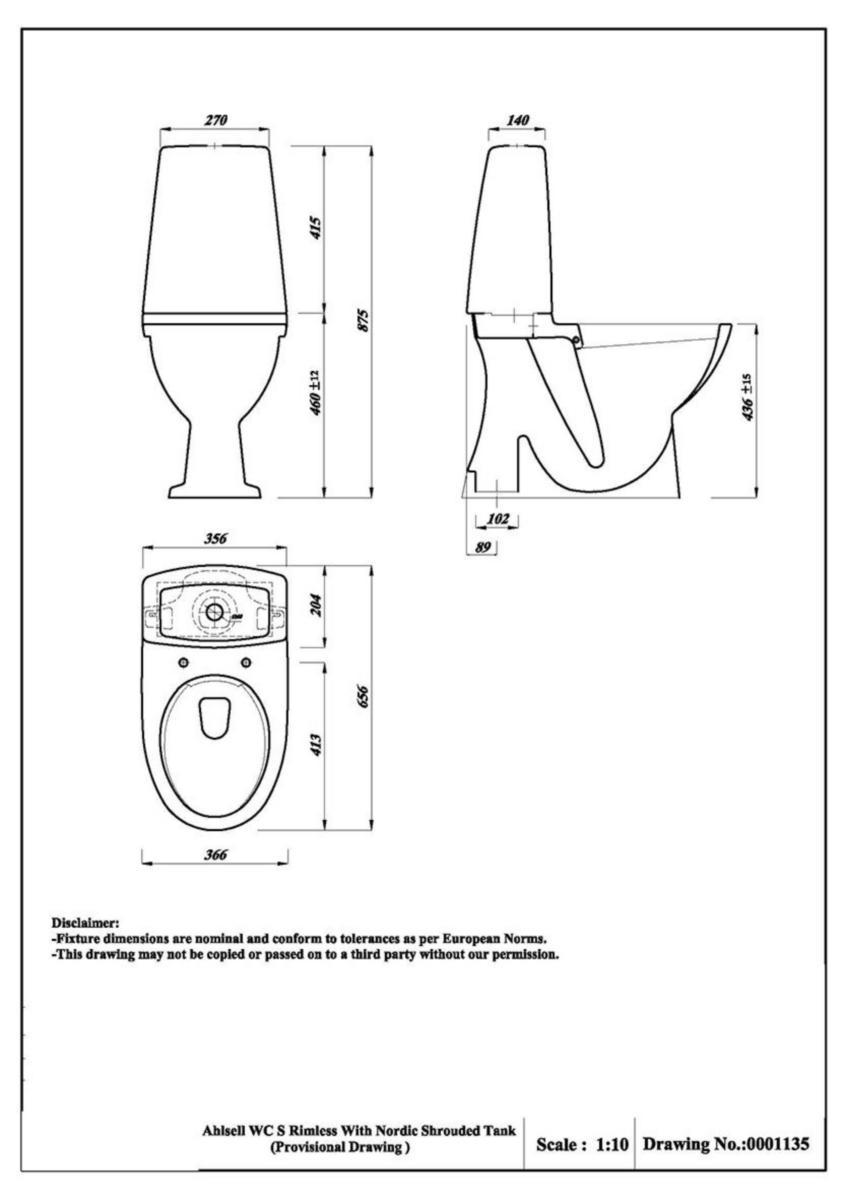 WC stol Rimless, dolt S-lås, 3/6 Liter, utan sits.