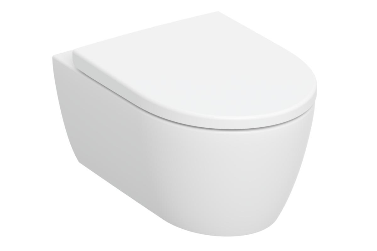 Geberit iCon vägghängd WC med slät utsida inkl mjukstängande hårdsits samt TurboFlush-spolning.