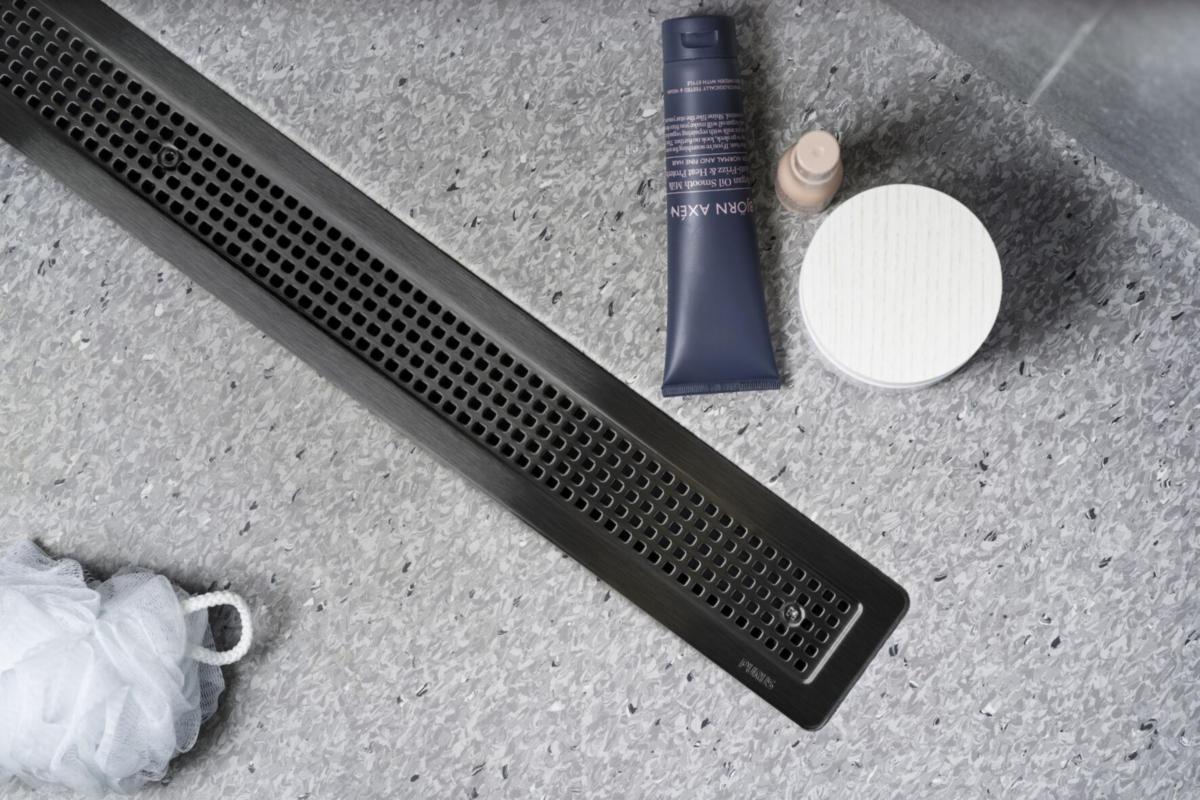 Golvbrunnssil Chess Mattsvart i ett linjärt utförande med hög och slitstark kvalitet i PVD behandlat rostfritt stål. Golvbrunnssilen levereras med skruvar och passar till designserien Purus Line Vinyl Plus 600.