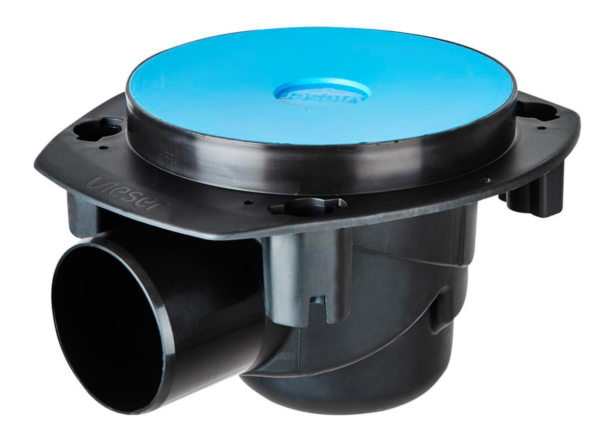 Vieser One golvbrunn DN 75, 75mm utlopp sida. 1,6 l/s. utan valvstöd. svart PP. Ø150mm.