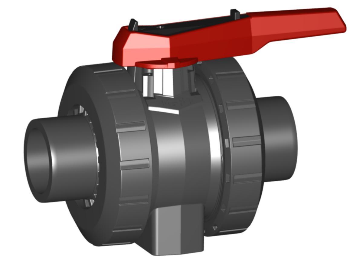 Kulventil Typ 546 Pro av PVC-U med limändar. Tätning av EPDM, kultätning av PTFE.