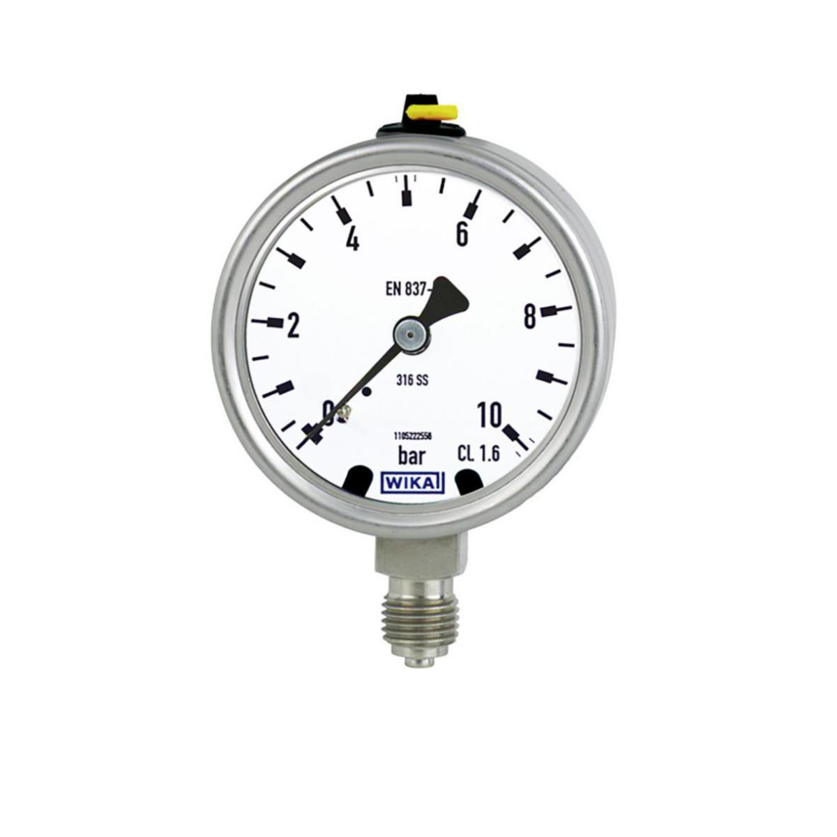 Tryckmätare i syrafast utförande för flytande eller gasformiga, aggressiva mätmedier. Medieberörda delar syrafast stål 316 SS. Mätnoggrannhet kl. 1,6%. Även med bakfläns, frontfläns eller bygel.