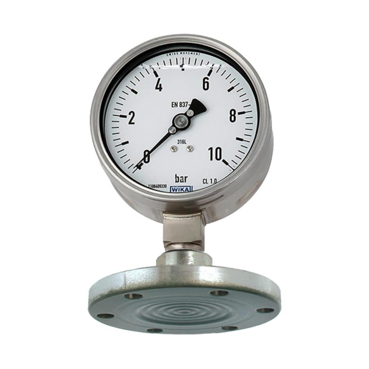 Tryckförmedlare med utvändigt membran och mätfläns 60 mm med monterad syrafast tryckmätare vätskedämpat hus 100 mm.