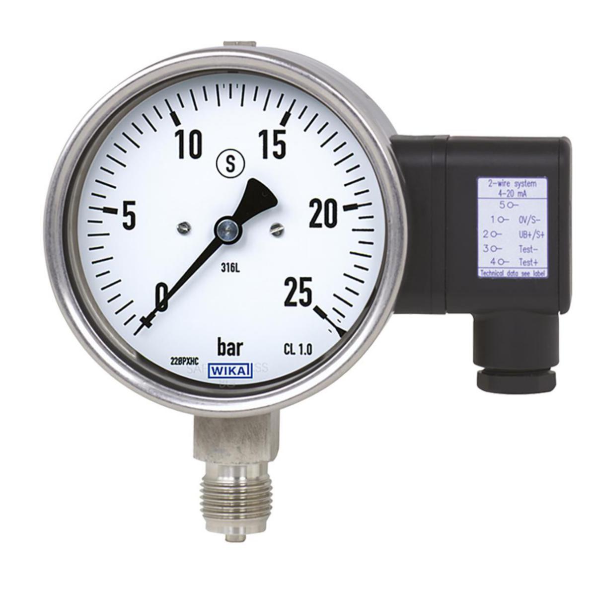 Tryckgivare med analog indikering. Säkerhetsutförande EN 837-1 (S3).
