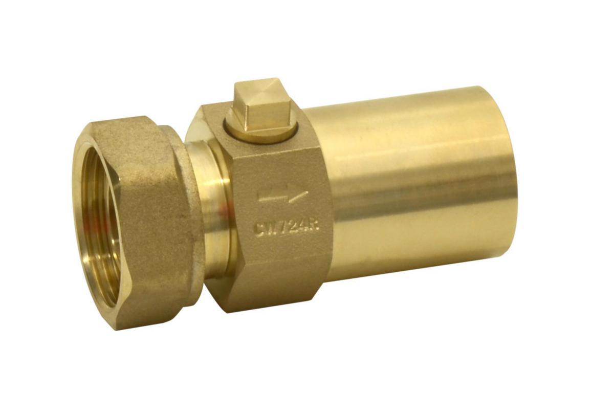 Backventil kontrollerbar med lekande o-ringstätad mutter GW1 1/8-14 x invändig gänga G20. Blyfri avzinkningshärdig mässing, för tappvatten. Kontrollerbar backventil kan användas som återströmingsskydd typ EA för vätskekategori 1 och 2 enligt direktivet SS-EN 1717.