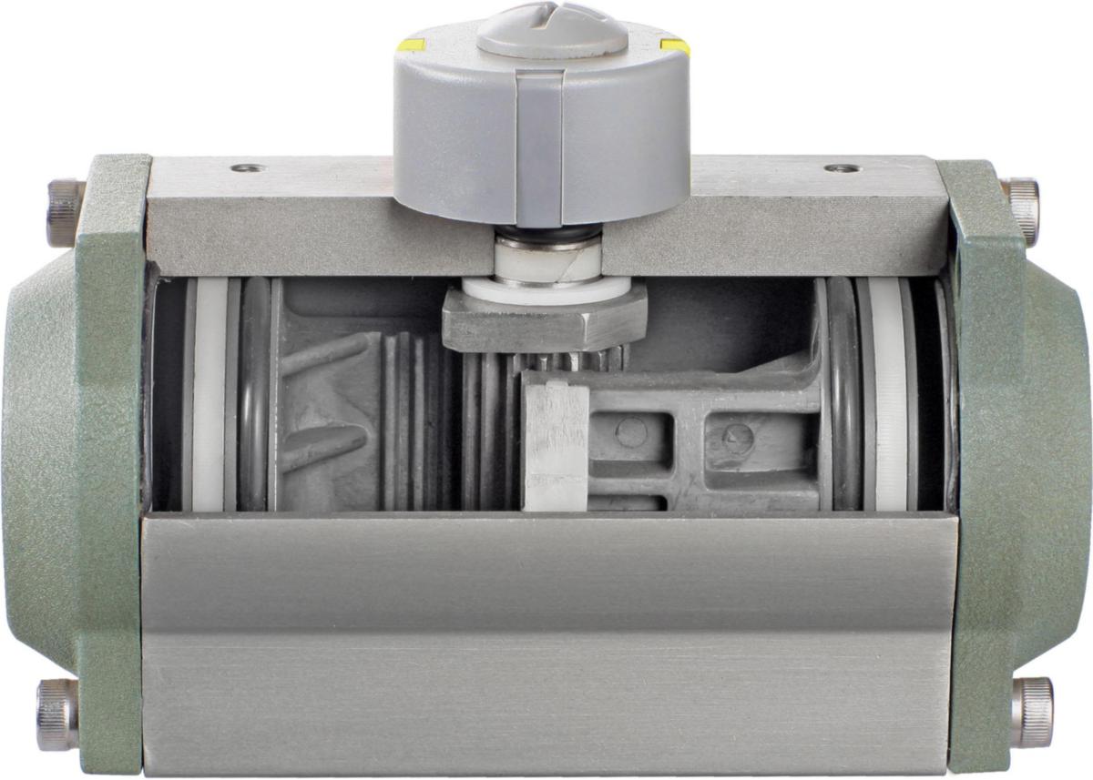 Dubbelverkande pneumatisk manöverdon,anslutningar enligt ISO 5211/DIN 3337 för ventilpassning.