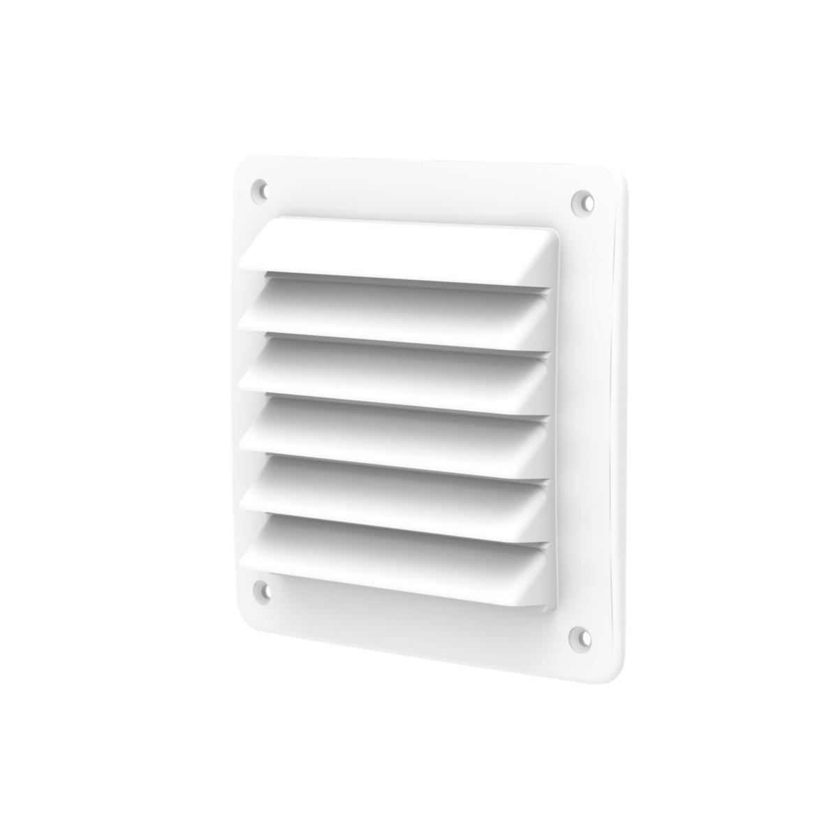 Rektangulärt galler 150x150mm avsett att användas på utvändig vägg, försett med försänkta skruvhål för skruvmontage. Skruvhålens hålbild passar Täckplatta 18 och 20. Försett med snäppfäste till Freshs väggenomföringsstosar. Kan förses med insektsraster 150. Tillverkat av UV-beständig konstruktionsplast i olika färger.
